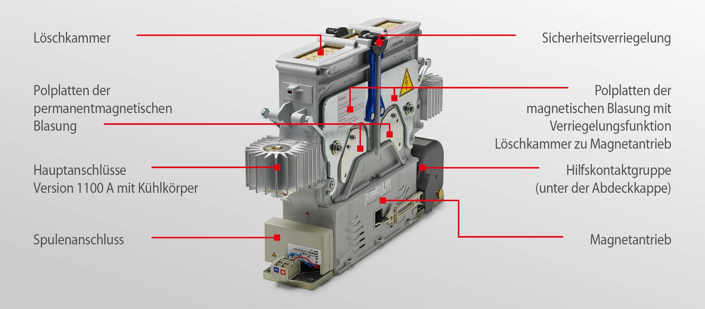 Thus the dwell periods in the contact zones are limited to an absolute minimum. This leads to a significant reduction in arc-related burn-up when switching off. The lower degree of wear on the contacts makes it possible to greatly increase maintenance intervals.