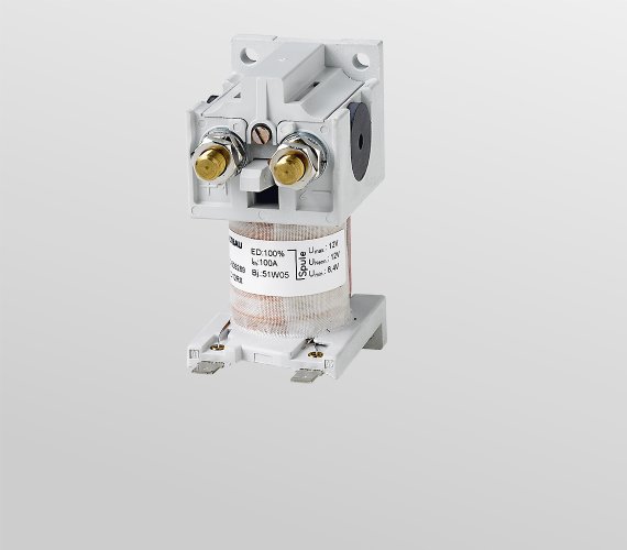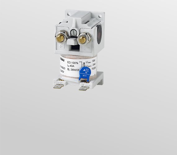 C137, C163 and C164 series contactors are suitable for handling DC loads in the range of 40 A up to 140 A for the most common coil voltages up to 120 V. The contactors have double-break contacts, a compact design, and function most reliably.