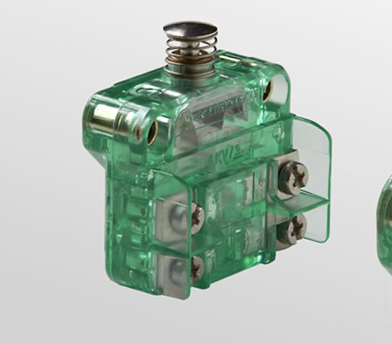 A contact bridge spreads the breaking capacity over two contact points. The contact material is silver. For the switching of high direct currents, we recommend blow magnets for preventing electric arcs (optional).